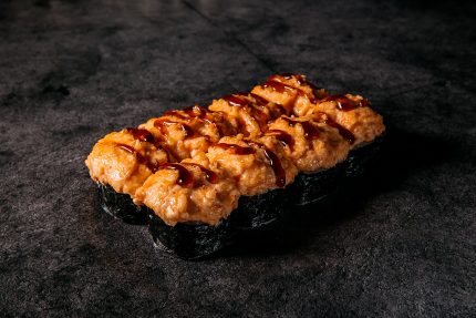 Диапазон цен: 12,00 BYN – 20,00 BYNТунец, такуан, сыр, сыр твердый, икра летучей рыбы, майонез, соус спайси, рис, нори
