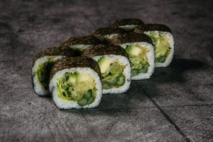 Диапазон цен: 7,20 BYN – 12,00 BYNОгурец, такуан, авокадо, спаржа, салат лоло бионда, кунжут, рис, нори