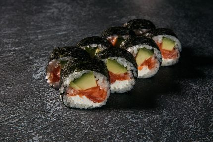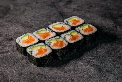 Диапазон цен: 9,60 BYN – 16,00 BYNЛосось, авокадо, рис, нори