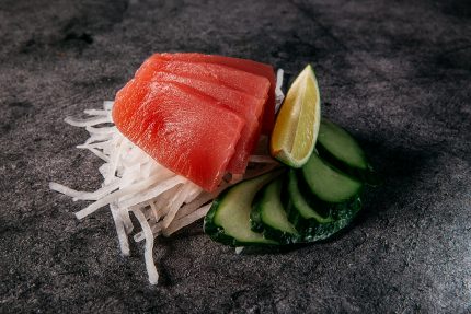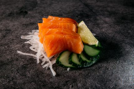 Угорь, дайкон, огурец, соус терияки, кунжут, лайм