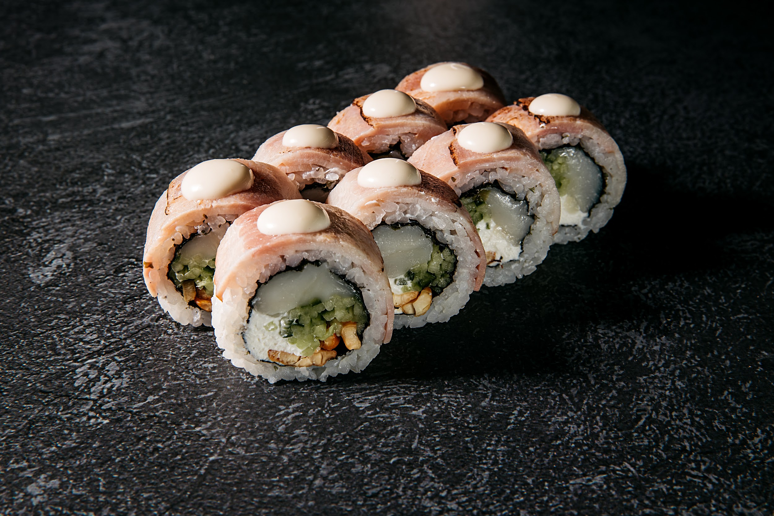 Ролл с беконом и морским гребешком