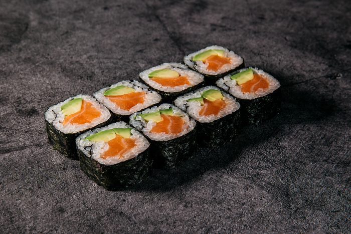 Ролл с копченым лососем и авокадо Диапазон цен: 12,00 BYN – 20,00 BYN